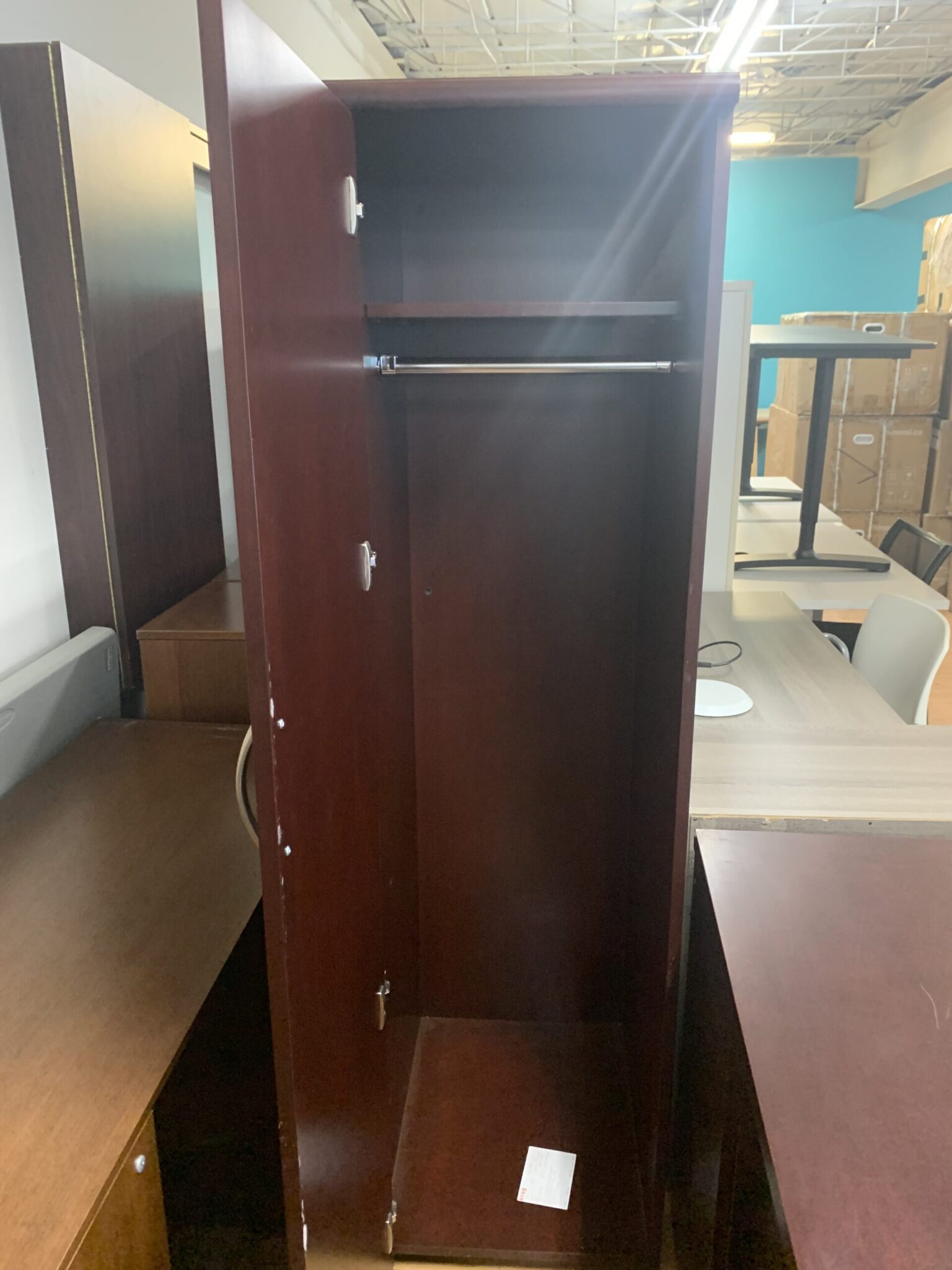 Used Stand up Laminate Storage Unit . Open door and inside hang hook and upper shelf-lower shelf works for footwear or other items. Measures 18″ deep x 23″ wide x 69″ tall and offered at $125.00 plus hst!